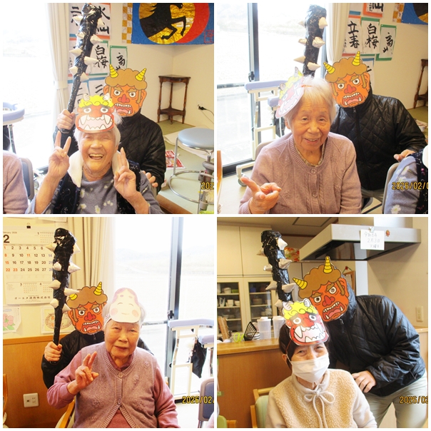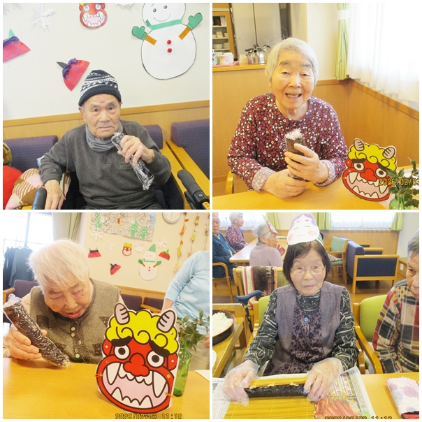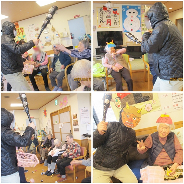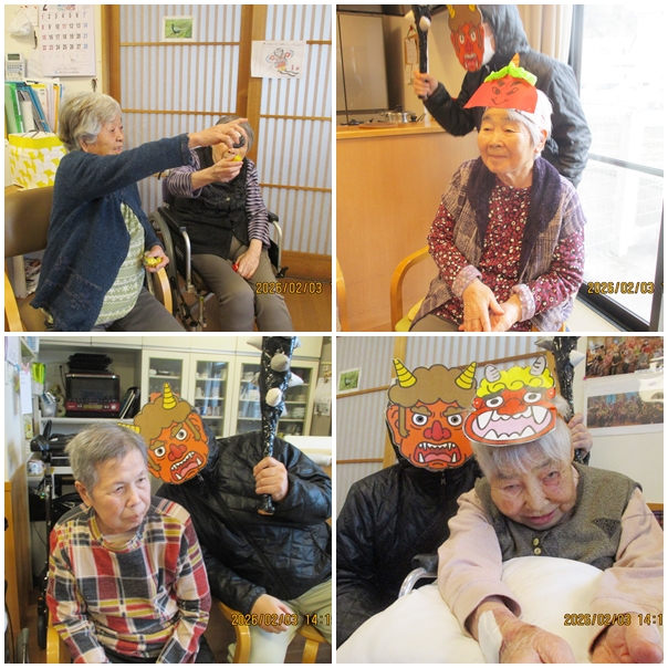 午後からは豆まきを行い『鬼は外、福は内』の元気な声が響く中、楽しい時間を過ごしました。