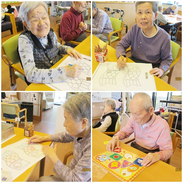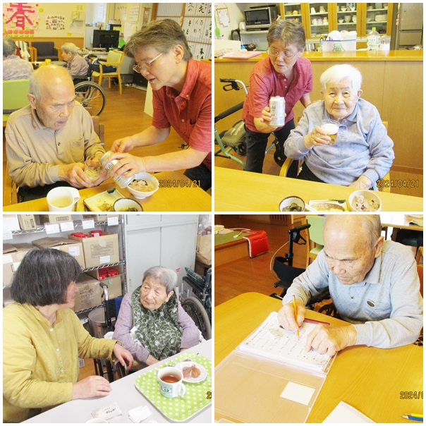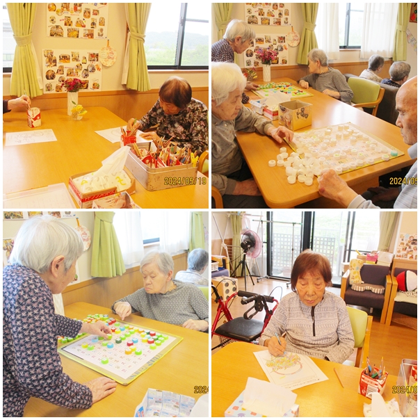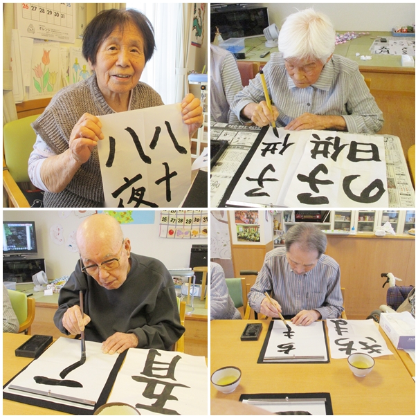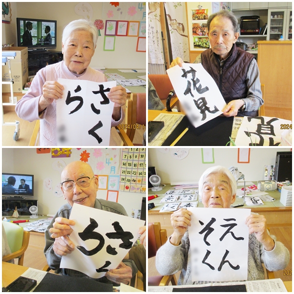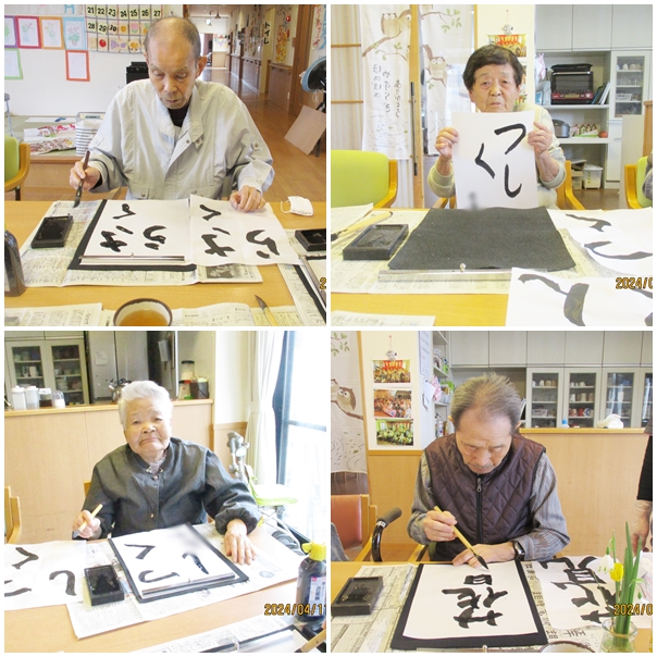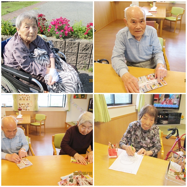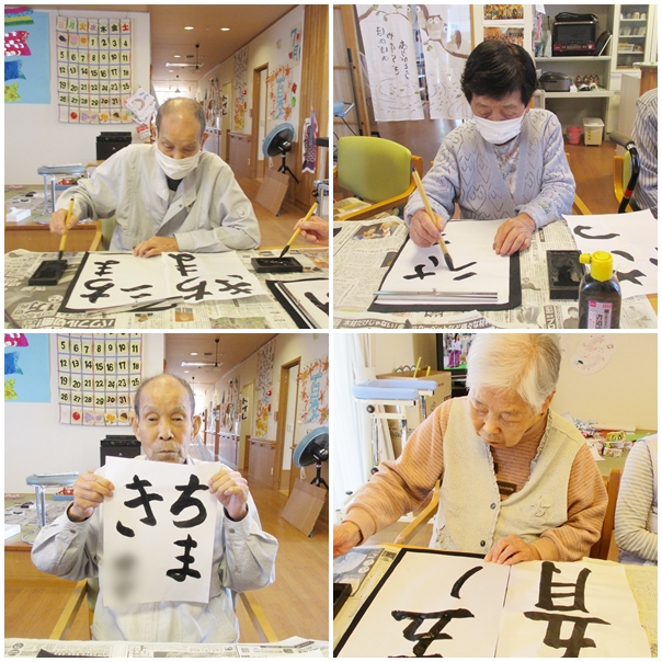 習字にカラオケ、脳トレ、レクリエーション、体操などなど…皆さん色々頑張っています。